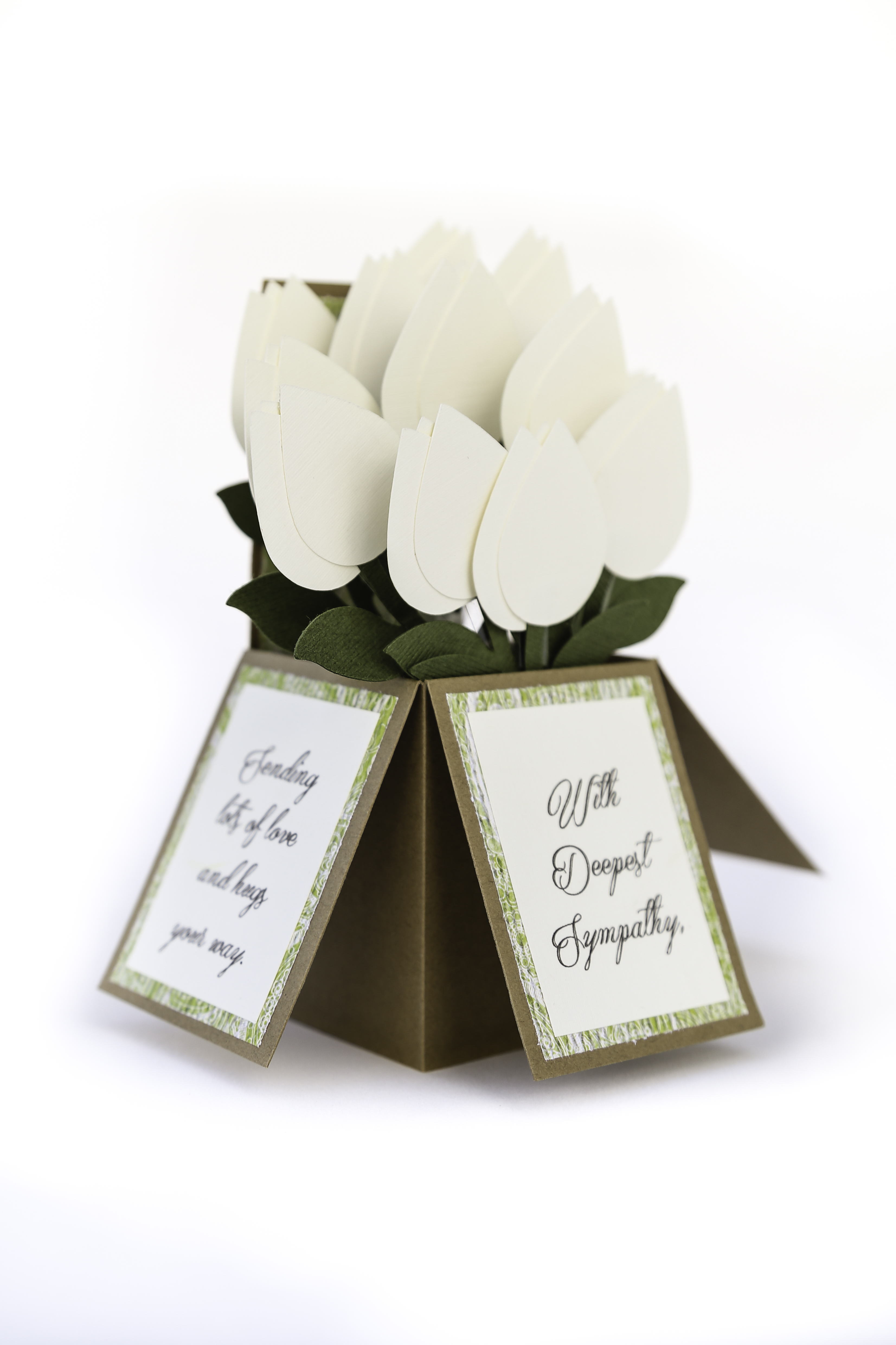 Send kind thoughts and words of comfort with this beautiful white rose bouquet pop up card. This design is part of our “Forever Flowers” signature collection. Each rose is individually handcrafted and specially placed into the card box to create an exquisite bouquet of flowers.